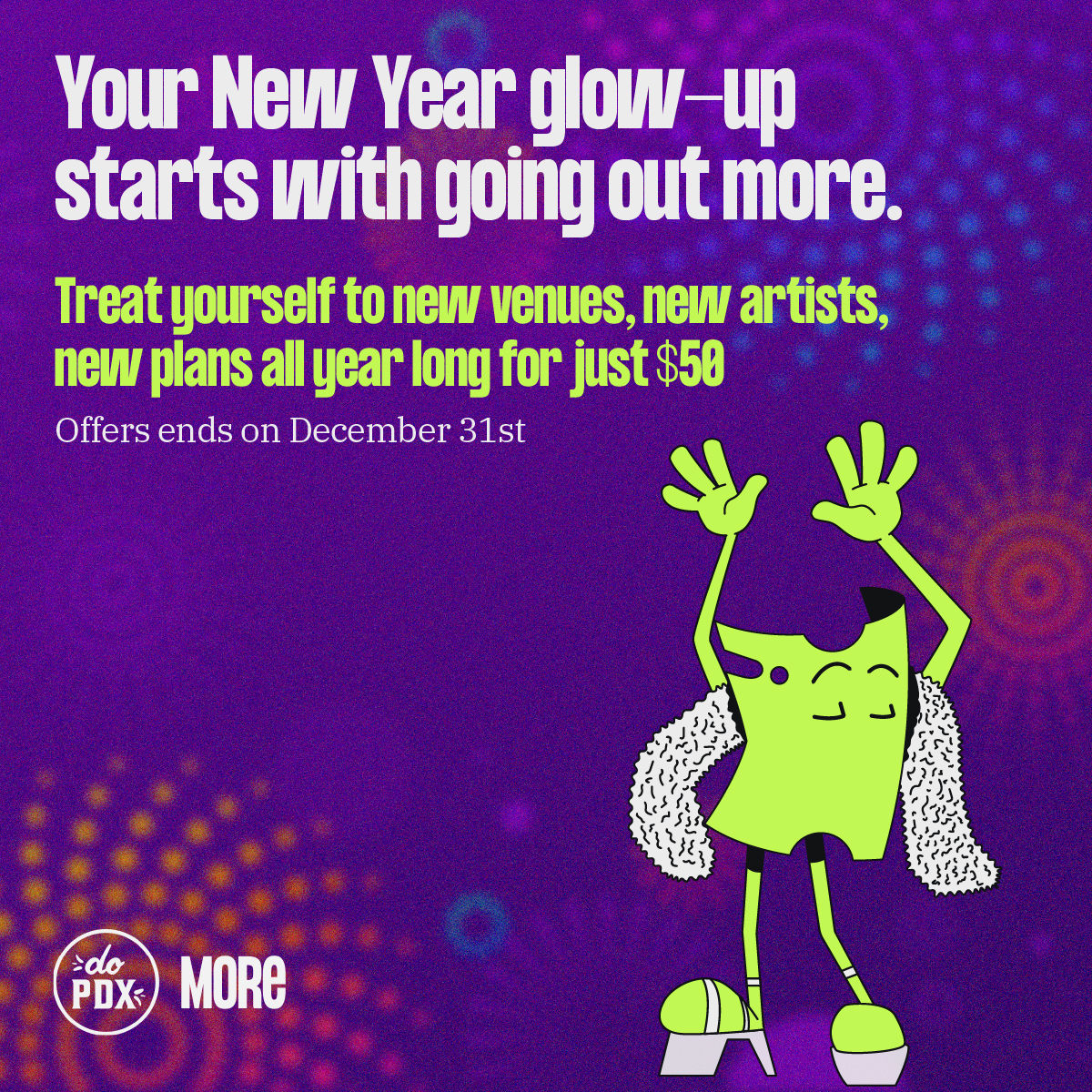 This is your last chance to treat yourself with the DoMORE Holiday Sale! $50 gets you a year of free monthly tickets to the best concerts, comedy, and culture in your city. We did the math so you don't have to – sign up and save today!